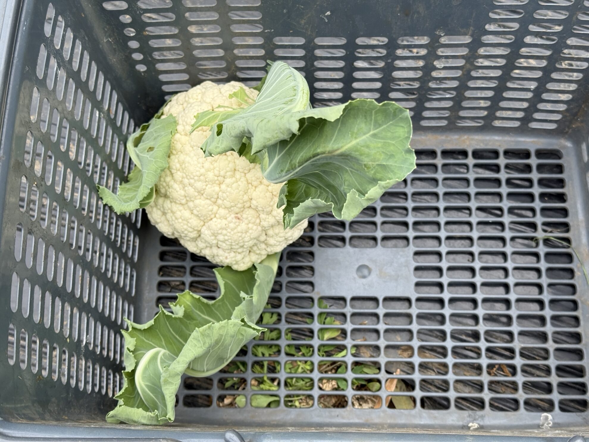 鈴木さん畑で、カリフラワーの収穫作業。