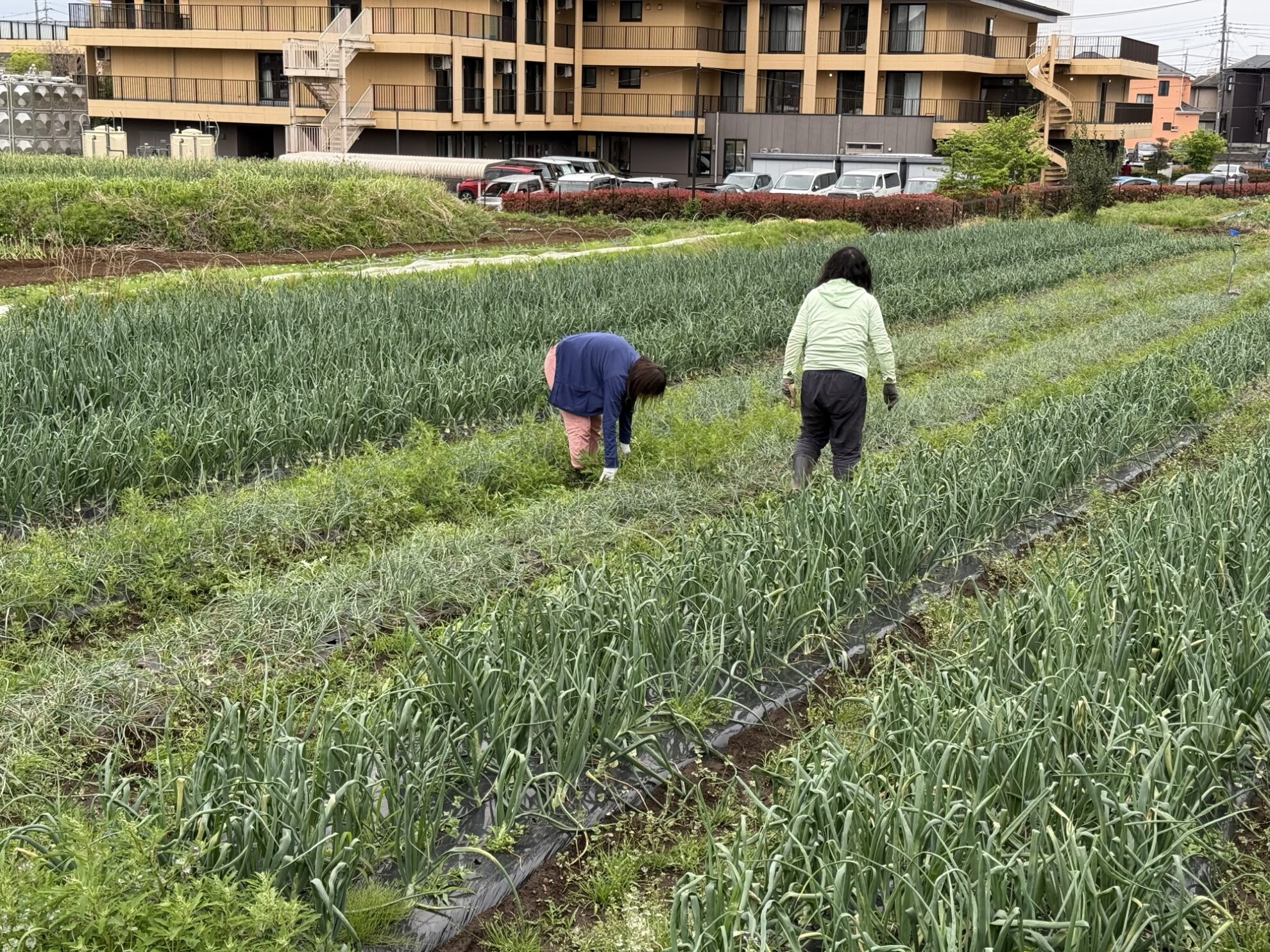 斉藤さんの下の畑で、玉ねぎ、らっきょう周りの除草作業。